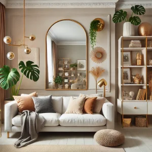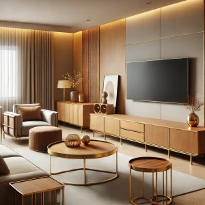 Kalau nak beli perabot baru, cuba cari yang ada kemasan kayu atau warna emas. Elemen kayu boleh buat rumah nampak mahal dan cozy, manakala sentuhan emas atau perak pada kaki meja atau bingkai cermin boleh beri efek glamor tanpa berbelanja besar.